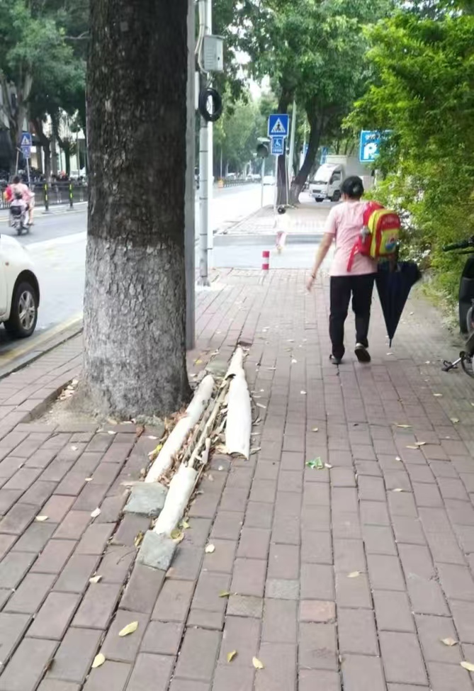 区人大代表及南沙街道工委对群众反映的问题高度重视,立即按程序转办区人大常委会代表工委,交办至区政府相关职能部门。相关部门迅速行动,经现场核实,群众反映裸露电线的位置为金岭南路412号恒成创意园门口电线。该处电线权属单位是广州南沙信息港有限公司(以下简称信息公司),线路裸露原因为树根生长将电线外保护管道破坏并将管道顶出地面。