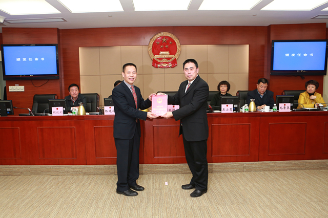 张谭均主任为翁殊武副区长颁发任命书