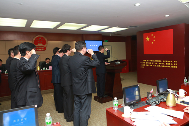 新任命人员面向国旗庄重宣誓