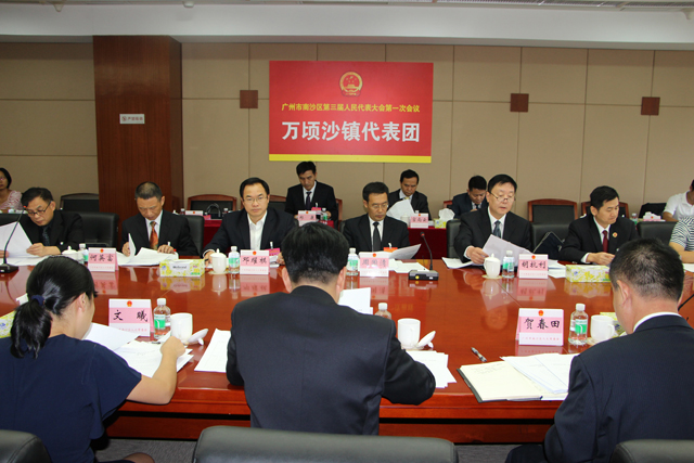 万顷沙镇代表团认真进行审议讨论