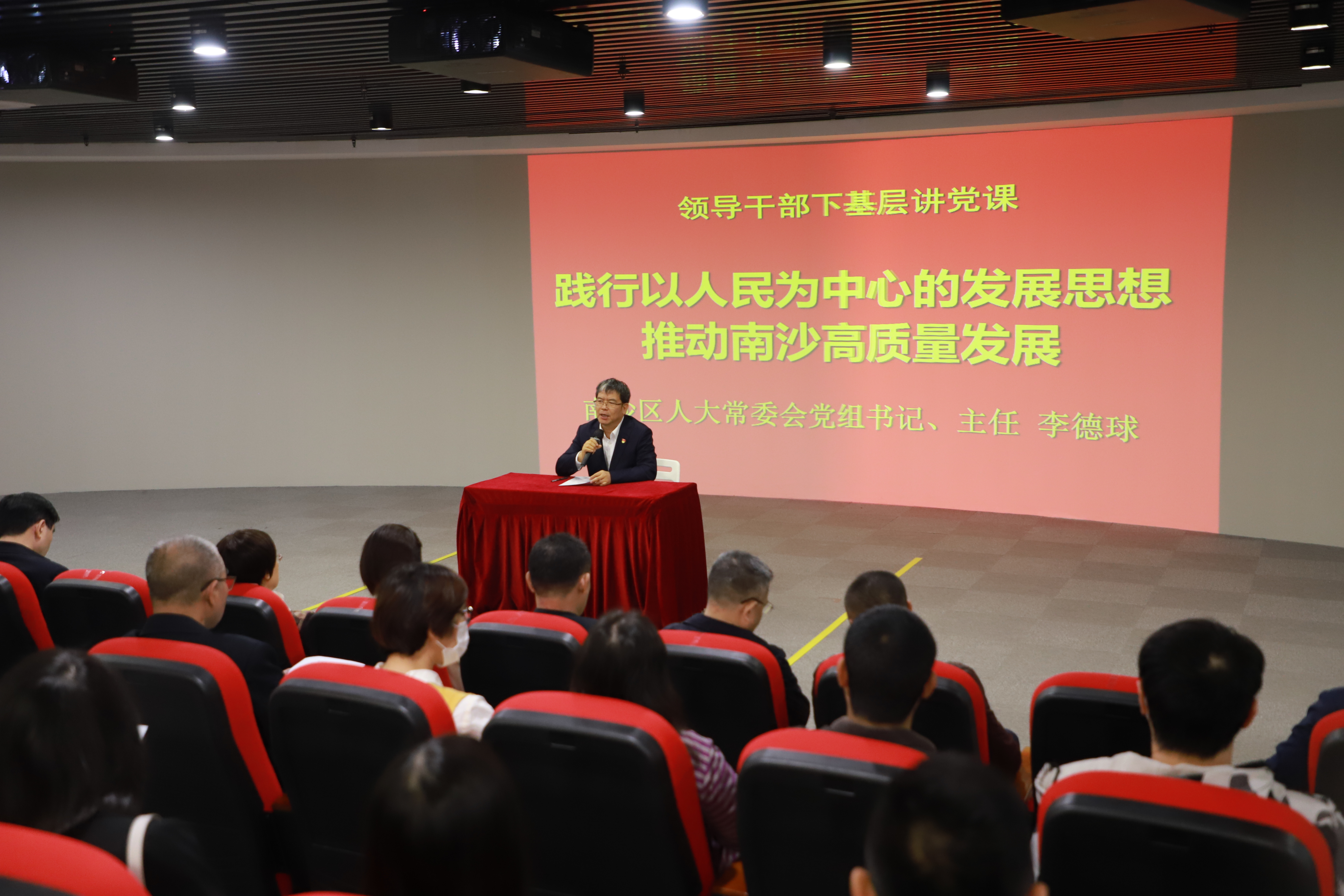 经历一场深刻的“政治体检”后,李德球同志围绕“践行以人民为中心的发展思想 推动南沙高质量发展”主题给基层党员上了一堂生动的党课,现场气氛热烈,学习氛围浓厚。李德球同志强调坚持以人民为中心的价值立场,坚持把实现人民对美好生活的向往作为现代化建设的出发点和落脚点,切实解决人民群众最关心最直接最现实的利益问题,要求基层党组织要发挥好战斗堡垒作用,党员个人要做好先锋表率,以高度责任感服务乡村振兴,不断健全乡村治理体系。