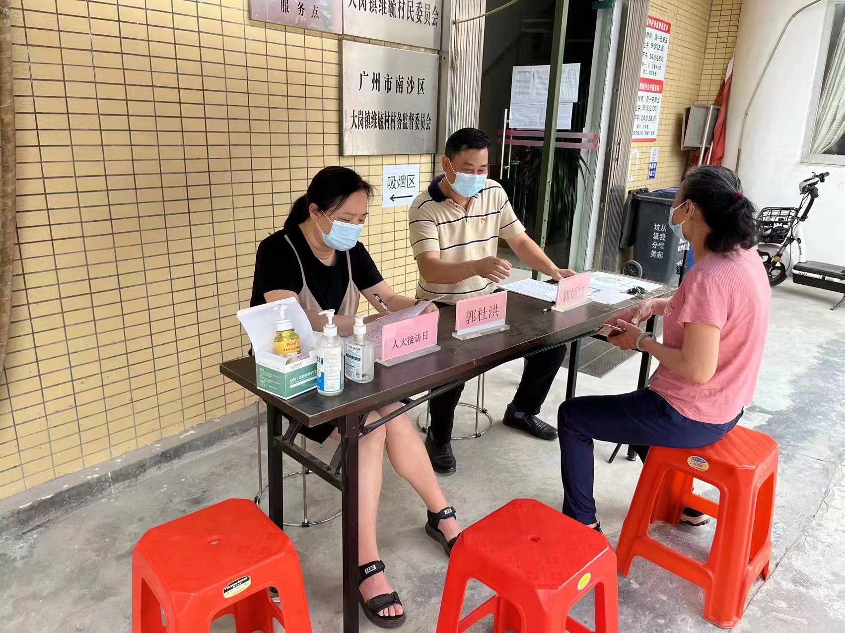 镇人大代表郭炳枝、郭杜洪在维毓村联络点接待村民群众