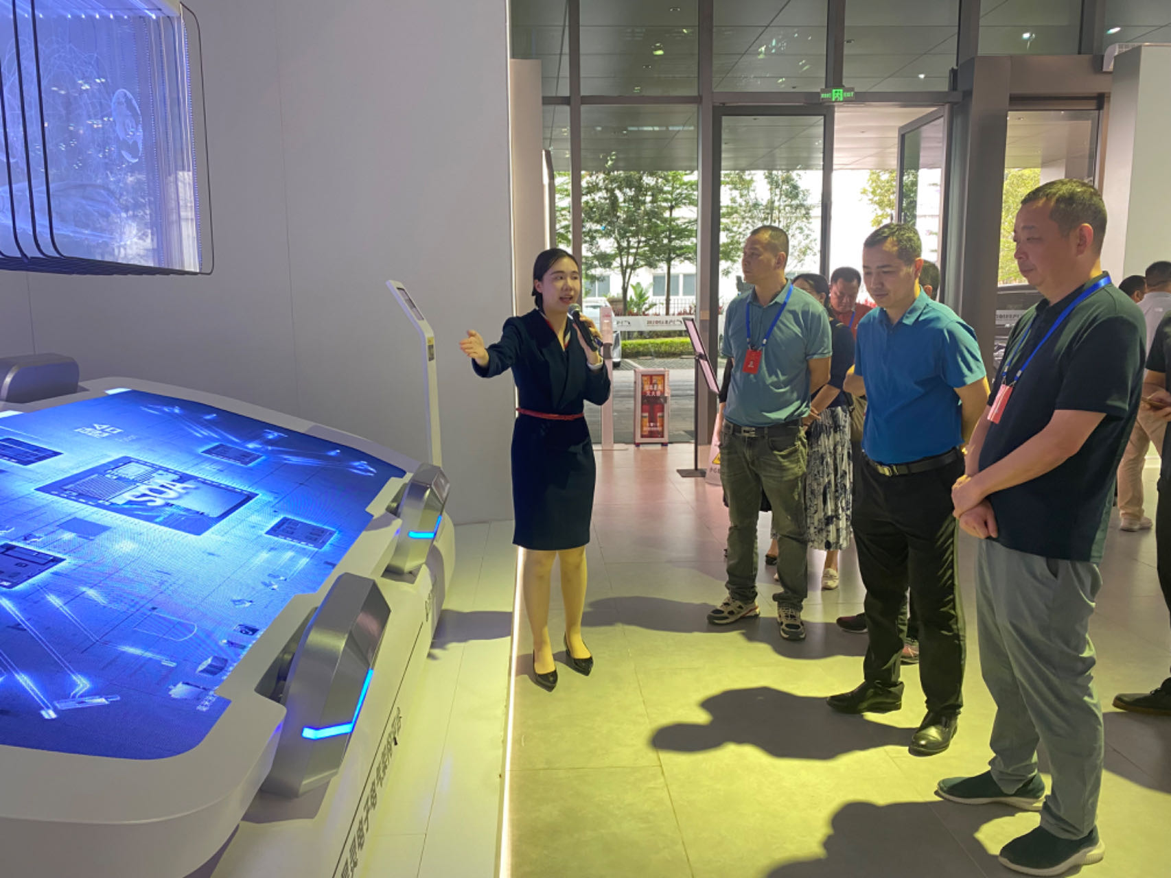 人大代表在活动现场聆听讲解、观看展示并相互交流探讨,充分了解南沙发展历程、城市建设、未来发展规划和汽车行业高新科技发展等情况。