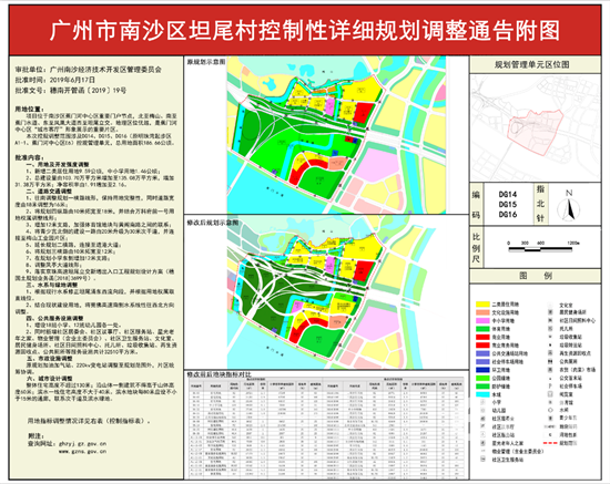 7月8日,广州南沙经济技术开发区规划和自然资源局发布公告称,《广州市南沙区坦尾村控制性详细规划调整》已获广州南沙经济技术开发区管理委员会批准。南沙区坦尾村位于南沙区蕉门河中心区重要门户节点,北至梅山,南至蕉门水道,东至凤凰大道,西至坦尾立交,地理区位优越,是蕉门河中心区“城市客厅”形象展示的重要片区。此次调整,坦尾村将新增二类居住用地9.59公顷及中小学用地1.46公顷,总建设量将由103.7万平方米增加至135.08万平方米,增加31.38万平方米,净容积率由1.91增加至2.16。